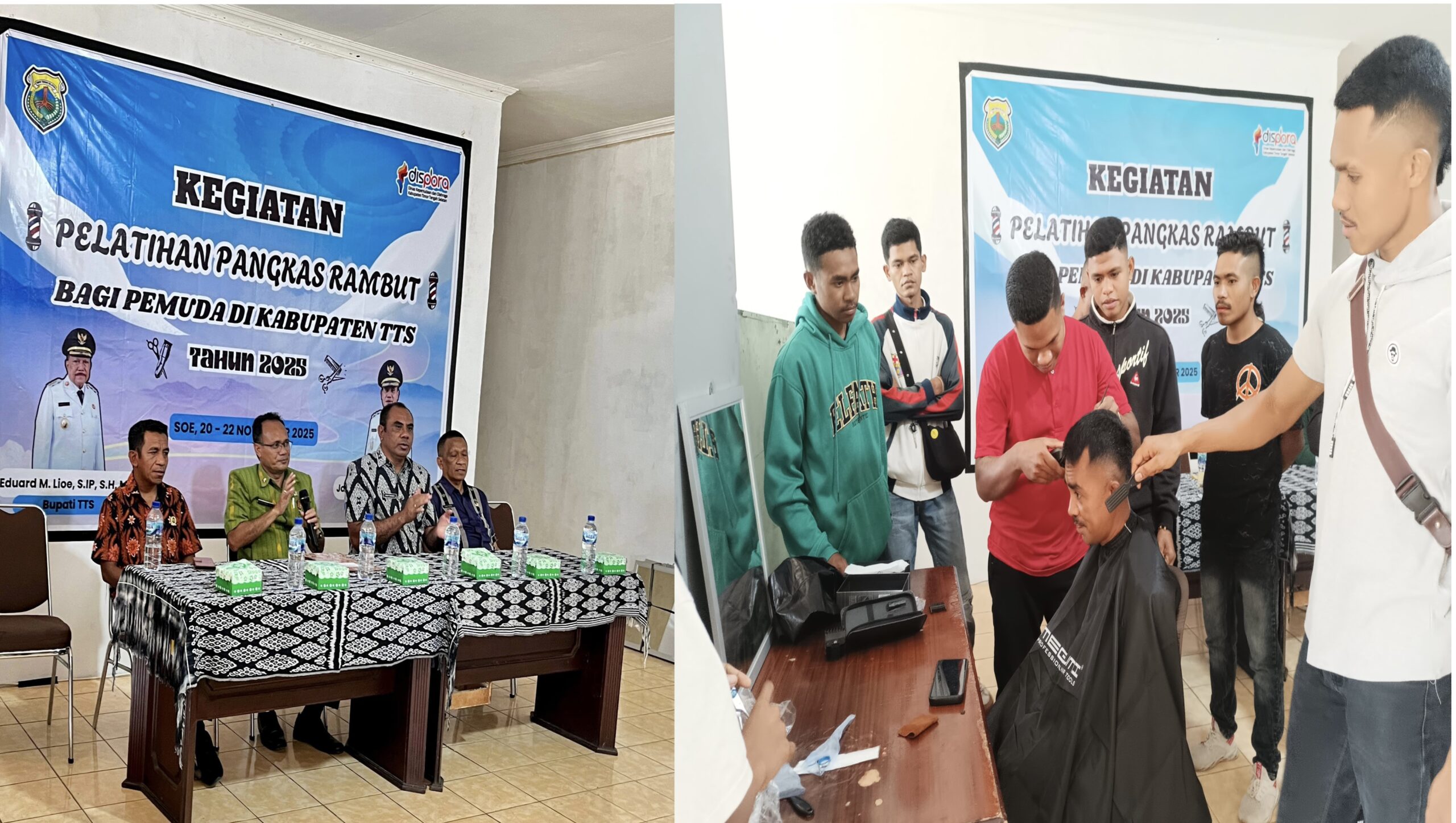 Untuk diketahui kegiatan pelatihan pangkas rambut sudah dimulai sejak Kamis 20 November 2025 bertempat di kantor Dispora. Kegiatan tersebut dibuka oleh Asisten 1, Deny Nubatonis yang didampingi Kepala Dispora Kabupaten TTS, Wilgo Nenometa.