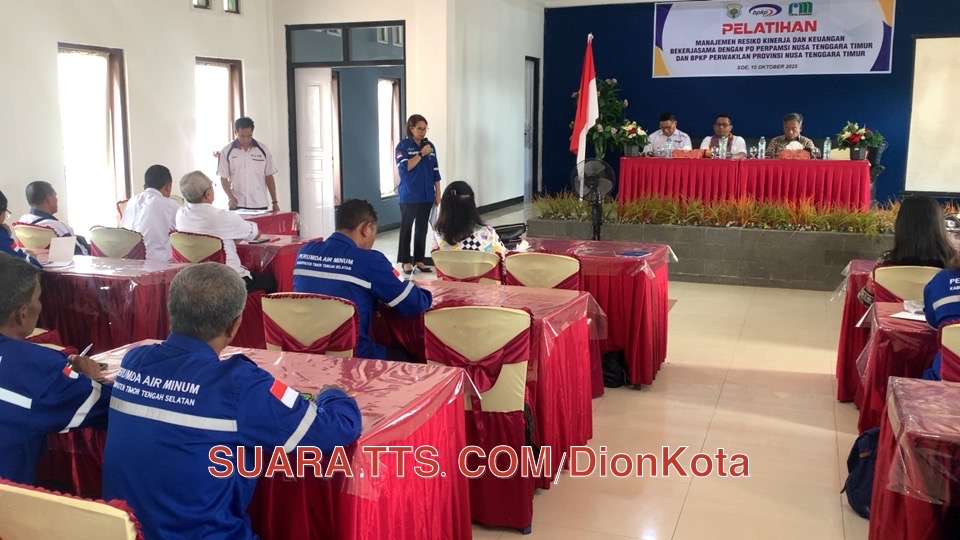 SUARA TTS. COM | SOE – Plt Direktur Perumda Soe, Susy A.E. Nitbani,SH membuat gebrakan guna meningkatkan kinerja Perumda Soe di tahun 2025. Bekerja sama dengan PD Perpamsi Nusa Tenggara Timur dan BPKP Perwakilan Propinsi NTT, Manajemen Perumda Soe menggelar pelatihan Manajemen Resiko Kinerja dan Keuangan yang diikuti 60 pegawai Perumda Soe. Kegiatan yang dibuka oleh Plt Asisten 2, Apris Manafe tersebut berlangsung di aula Hotel Timot Megah, Rabu 15 Oktober 2025.