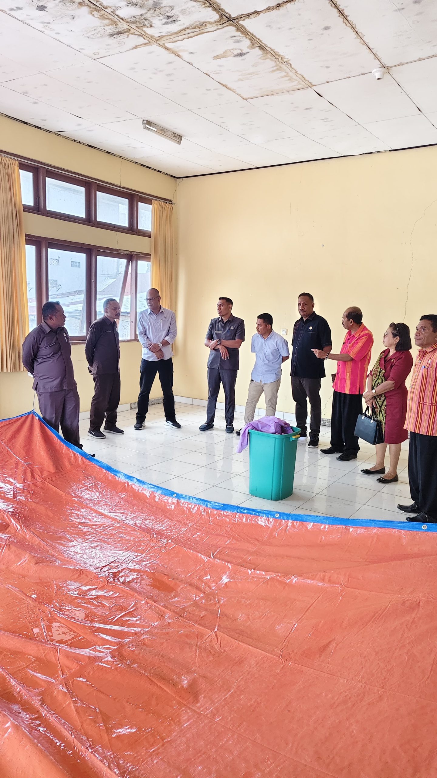 Ket. Foto: Nampak komisi IV DPRD TTS bersama wakil ketua DPRD TTS, Aris Nenobahan sedang melihat atap bangunan kantor Dinas Kearsipan dan Perpustakaan yang bocor