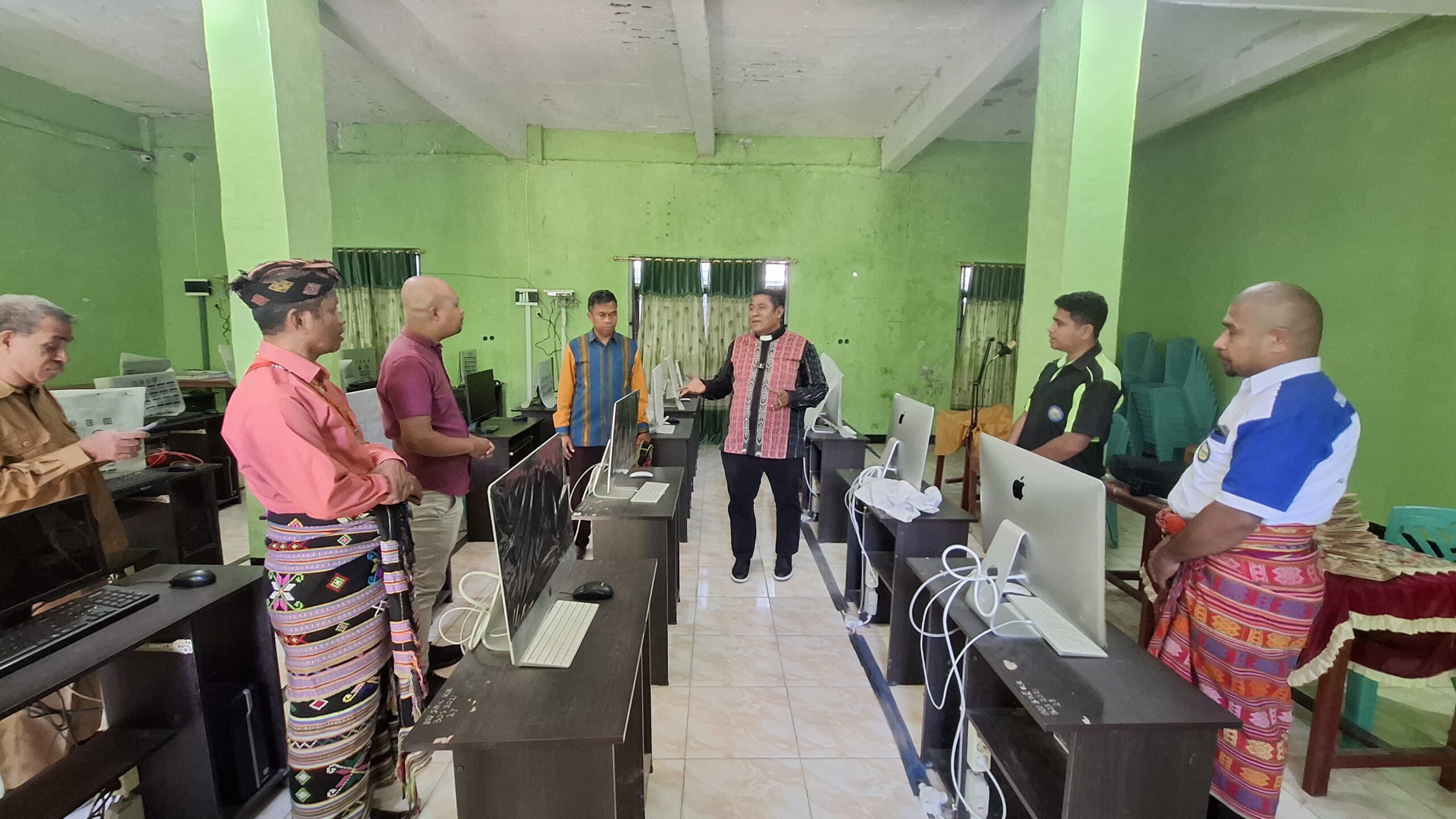 Usai penyerahan aplikasi, Ketua Sinode GMIT meninjau laboratorium komputer SMK Kristen Soe sebelum melanjutkan kunjungan ke SMP Kristen 1 Soe dan SMA Kristen 1 Soe.