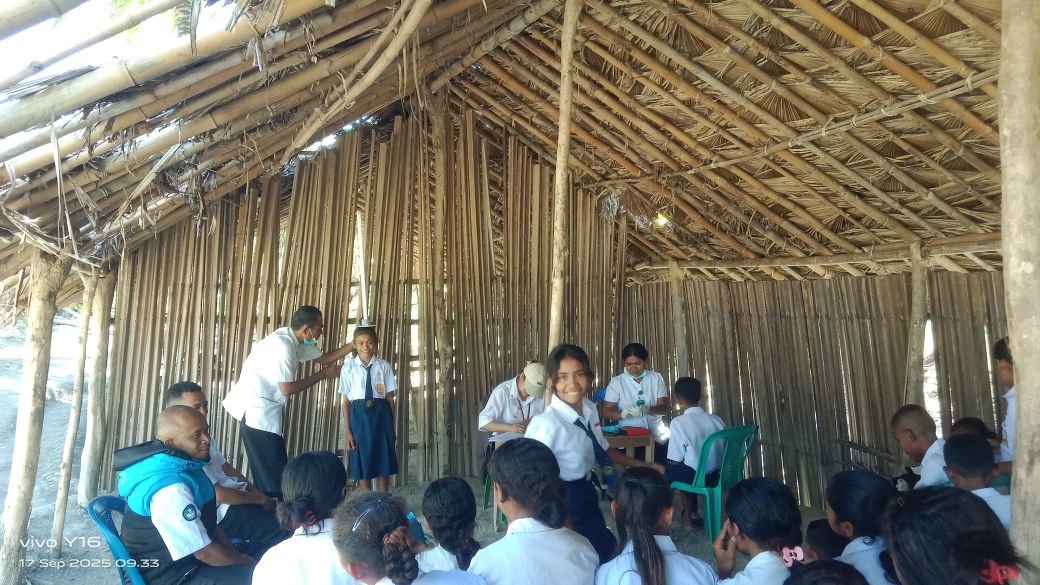 SUARA TTS.COM | SOE – Tenaga kesehatan Puskesmas Ayotupas, Kecamatan Amanatun Utara, Kabupaten Timor Tengah Selatan (TTS) melaksanakan pemeriksaan kesehatan di SMP Negeri Kua’Aus pada Rabu, 17 September 2025.