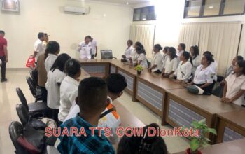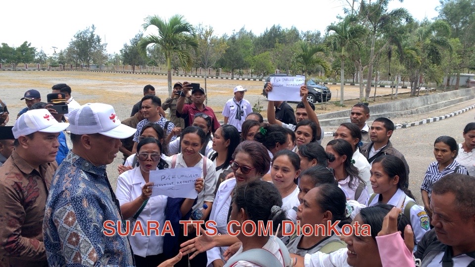 SUARA TTS. COM | SOE – Kedatangan Wakil Menteri Pendidikan Tinggi, Sains, dan Teknologi (Wamendiktisaintek) Fauzan di kantor bupati TTS, Rabu 8 Oktober 2025 disambut aksi demo para honorer yang tak diusulkan sebagai pegawai pemerintah dengan perjanjian kerja (P3K) paruh waktu oleh Pemda TTS. Sambil membentangkan baliho bertuliskan “paruh waktu menurut keadilan” para honorer tersebut berjuang untuk bisa bertemu dan beraudiensi dengan Bupati TTS, Eduard Markus Lioe yang tengah mendampingi Wamendiktisaintek.